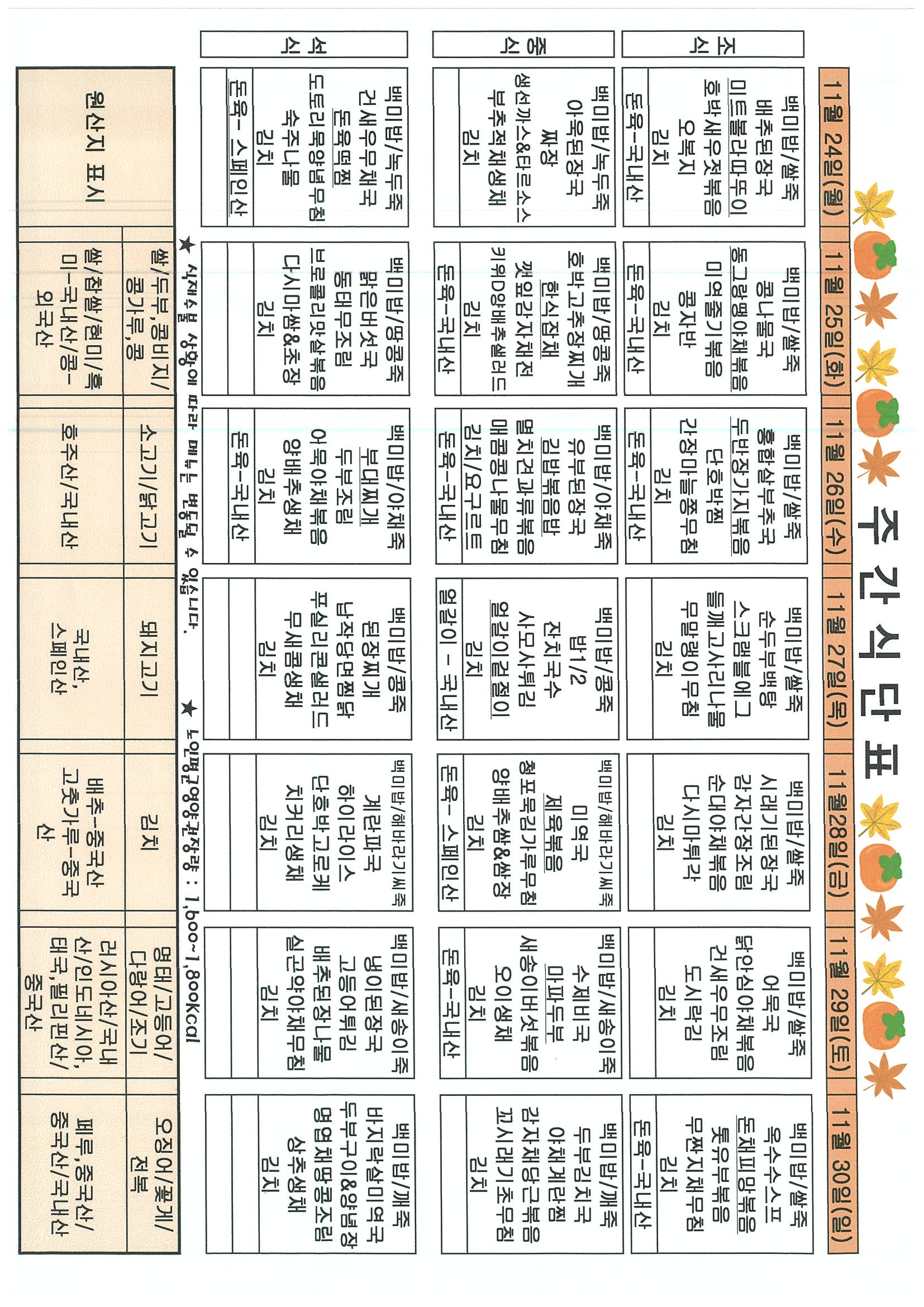2025³â 11¿ù 4ÁÖÂ÷ ½Ä´ÜÇ¥