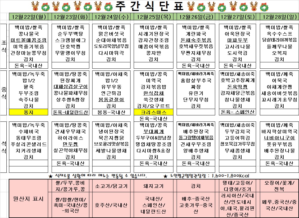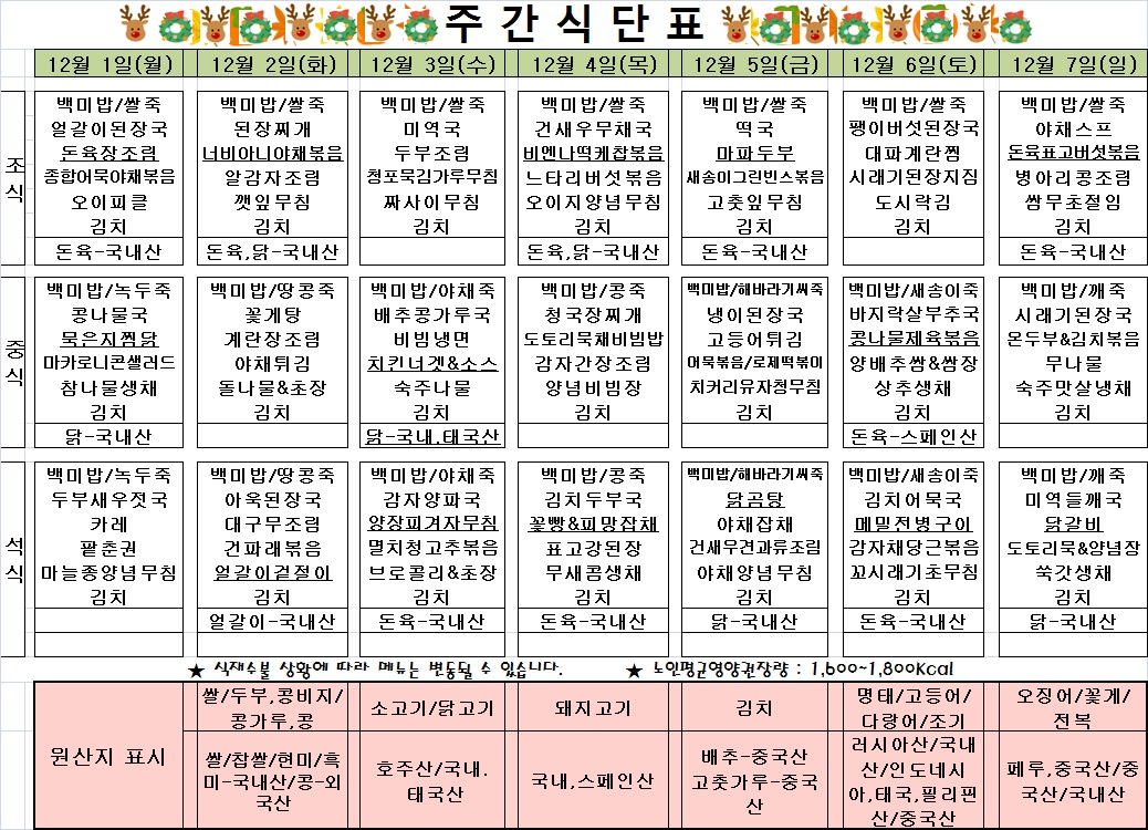 2025³â 12¿ù 1ÁÖÂ÷ ½Ä´ÜÇ¥