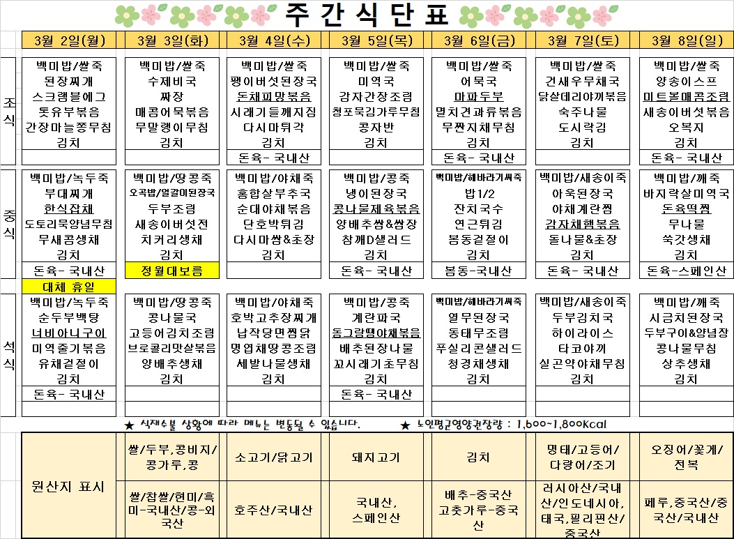 2026³â 3¿ù 1ÁÖÂ÷ ½Ä´ÜÇ¥