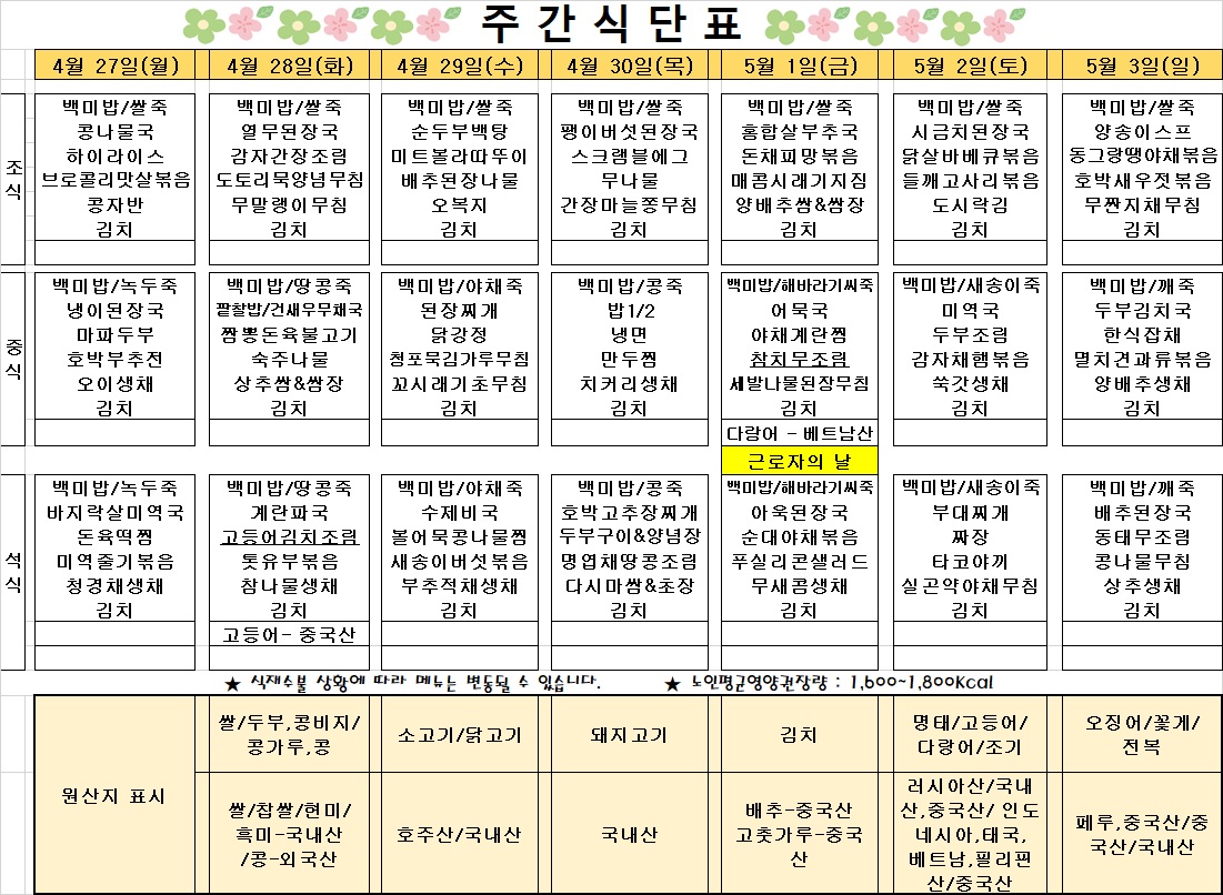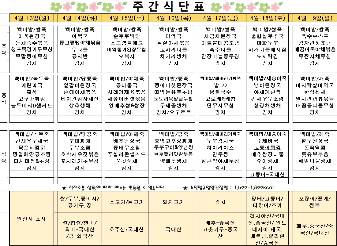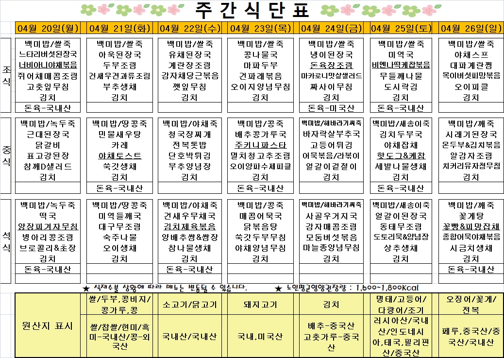 2026³â 4¿ù 1ÁÖÂ÷ ½Ä´ÜÇ¥